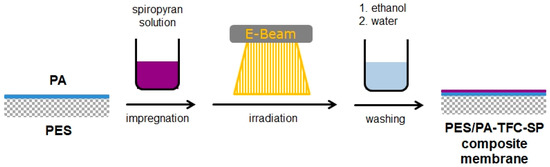 A novel technique for the covalent immobilization of SP onto a PES/PA-TFC membrane was performed in a one-step reaction using low-energy electron beam. The method is illustrated in Figure 2.