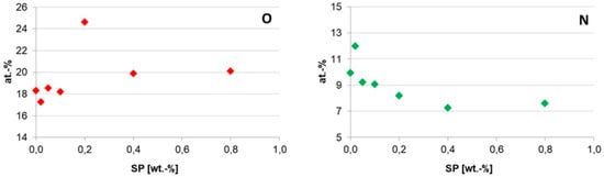 PES/PA-TFC and PES/PA-TFC-SP membranes were analyzed using XPS. From the wide-scan spectra, O and N surface concentrations were determined as shown in Figure 4. It is visible that the O amount sharply increased with increasing SP concentration at SP 0.2 wt % and then a plateau is reached. It indicates considerable increased immobilization of SP at an optimum concentration of 0.2 wt % as most of the oxygen was sponsored by the hydroxylated SP.
