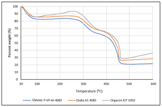 TGA Curves of Clevios, Ossila, and Orgacon PEDOT:PSS.