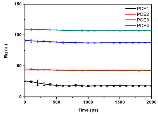 The radius of gyration (Rg) of PCE molecules in systems.