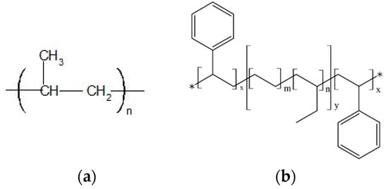 Chemical structure of (a) polypropylene (PP) and (b) styrene-(ethylene-butylene)-styrene (SEBS).