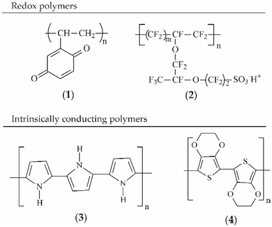 Organic CPs, which contain electrostatically and spatially localized redox sites and in which electrons are transported by an electron exchange reaction between redox neighbouring sites, are called redox polymers. These polymers may be divided into the following: