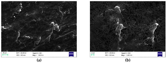 The surface images of the films containing the highest amount of glycerol (Figure 3a,b) show softer, more curvy edges of particles, and a fluffier cross-section image can also been seen (Figure 3c,d). The fluffiness of the structure can be explained by the plasticizing effect of the glycerol, in which the small molecular weight compound is pushing the molecules slightly farther apart to enhance the mobility and the softness of the structure.