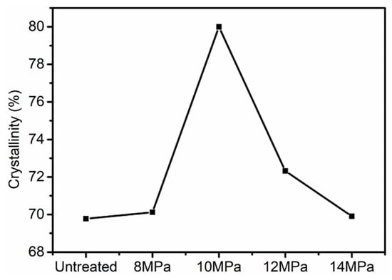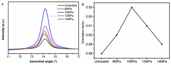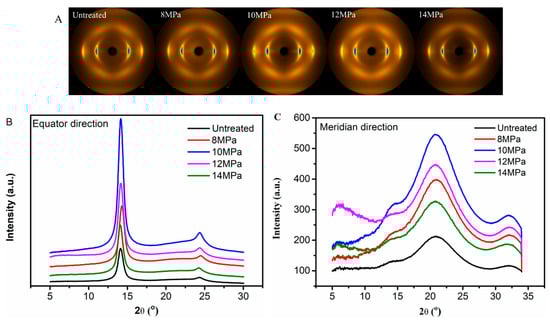 3.2. Wide Angle X-Ray Diffraction (WAXD) Analysis of PAN Fibers Treated at Different Pressures