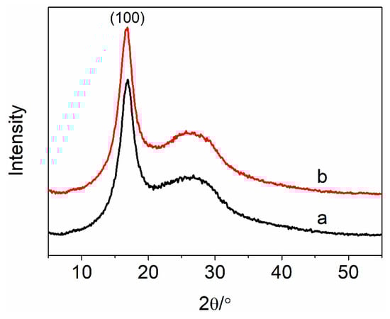 XRD curves of (a) the PAN nascent fibers and (b) the grafted MWCNT/PAN nascent composite fibers.
