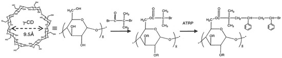Synthesis of star polymers with a γ–CD core and polystyrene (PS) arms (CD-stars). Reproduced from [14] with permission, copyright Elsevier, 2010.