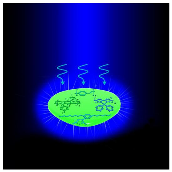 - Brouwer, H.J.; Krasnikov, V.V.; Hilberer, A.; Wildeman, J.; Hadziioannou, G. Novel high efficiency copolymer laser dye in the blue wavelength region. Appl. Phys. Lett. 1995, 66, 3404–3406. [Google Scholar] [CrossRef]