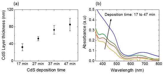 - Enríquez, J.P.; Mathew, X. Influence of the thickness on structural, optical and electrical properties of chemical bath deposited CdS thin films. Sol. Energy Mater. Sol. Cells 2003, 76, 313–322. [Google Scholar] [CrossRef]