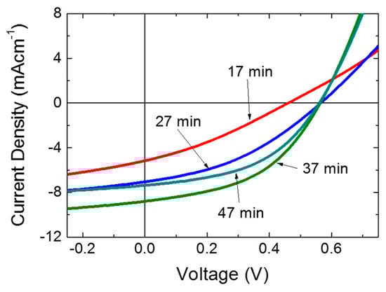 - Kuwabara, T.; Sugiyama, H.; Yamaguchi, T.; Takahashi, K. Inverted type bulk-heterojunction organic solar cell using electrodeposited titanium oxide thin films as electron collector electrode. Thin Solid Films 2009, 517, 3766–3769. [Google Scholar] [CrossRef]
