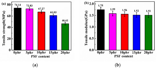 The tensile strength (a) and Tensile modulus (b) of cured PSF/epoxy blends.
