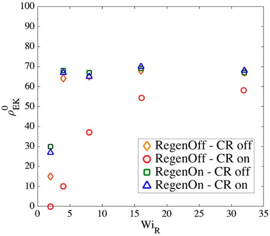 Figure 15 shows that at high Weissenberg numbers, for all chain lengths, the fraction of entangled kinks converges to the range . We had the value in kink dynamics simulations for highly entangled polystyrene samples in our previous publication [18]. Based on the results in Figure 15, however, we here choose as a more appropriate value for EKD simulations. We note that this value is appropriate for entangled polymer solutions of volume fraction , but may well differ for other volume fractions. Different number of Kuhn steps between slip-links would be needed to explore further the dependencies of on polymer concentration.