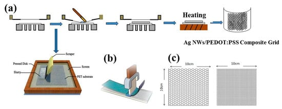 Schematic illustration of the screen-printed process of Ag NWs/PEDOT:PSS composite grids.