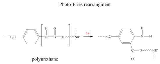 - Rosu, D.; Rosu, L.; Cascaval, C.N. IR-change and yellowing of polyurethane as a result of UV irradiation. Polym. Degrad. Stab. 2009, 94, 591–596. [Google Scholar] [CrossRef]
