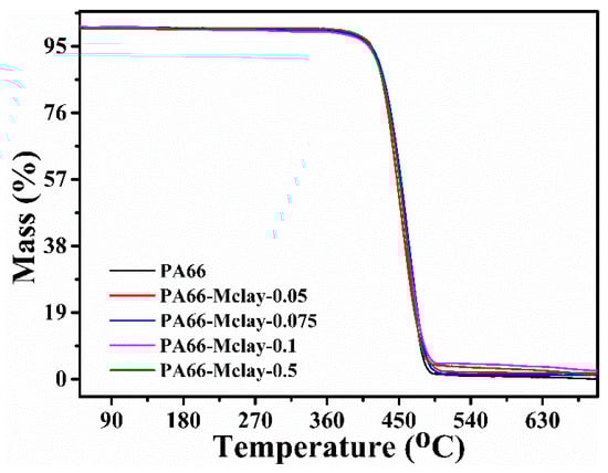 | Sample | PA66 | PA66-Mclay-0.05 | PA66-Mclay-0.075 | PA66-Mclay-0.1 | PA66-Mclay-0.5 | ||