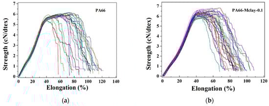 3.3. Characterization and Properties of Nylon 66 and Nylon 66/Mclay Fibers