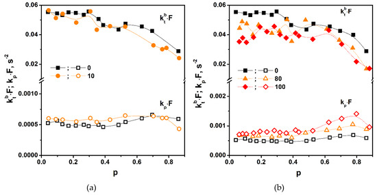 where F = ϕ·Ia, we can determine the polymerization rate coefficients in the form of kp × F and ktb × F. It was assumed that F is constant in the range of the conversions studied. A detailed procedure of the calculations was described in [20,24].