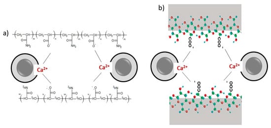 The most common flocculants used in C-FCC production by the Hatscheck process are anionic polyacrylamides (APAMs). This is because the flocculation process is enhanced by the interaction of the Ca2+ ions, produced by the cement hydration, with the carboxylic groups of the polymer chains [118] (Figure 5a).