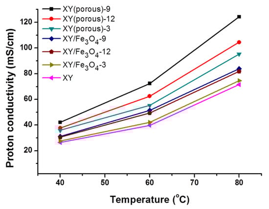 - Vinothkannan, M.; Kim, A.R.; Gnana Kumar, G.; Yoon, J.M.; Yoo, D.J. Toward improved mechanical strength, oxidative stability and proton conductivity of an aligned quadratic hybrid (SPEEK/FPAPB/Fe3O4-FGO) membrane for application in high temperature and low humidity fuel cells. RSC Adv. 2017, 7, 39034–39048. [Google Scholar] [CrossRef]