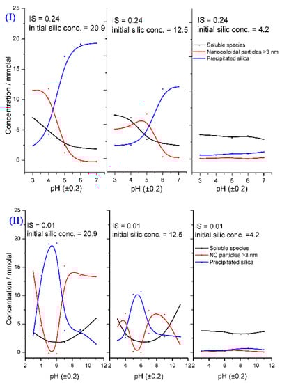 - Icopini, G.A.; Brantley, S.L.; Heaney, P.J. Kinetics of silica oligomerization and nanocolloid formation as a function of pH and ionic strength at 25 °C. Geochim. Cosmochim. Acta 2005, 69, 293–303. [Google Scholar] [CrossRef]