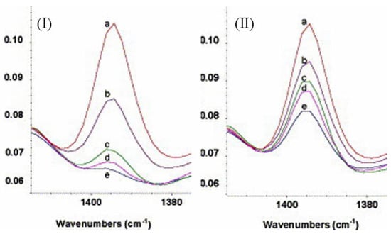 Kinetics of hydrolysis for MTES in an alkaline system for different solvents, inferred from the peak height of MTES at 960.0 cm−1. Reprinted with permission from [48]. Copyright American Chemical Society, 2006.