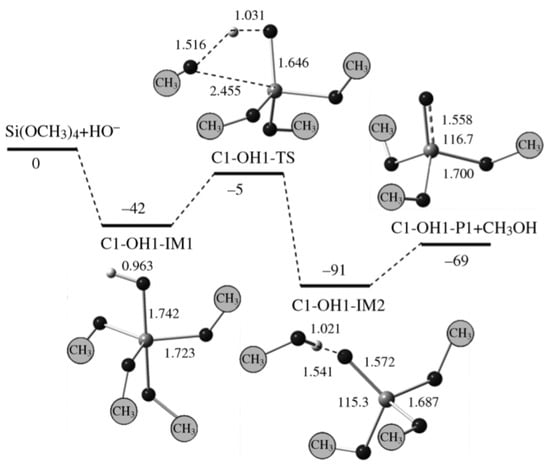 - Cheng, X.; He, G.; Li, L.; Liu, Y. Methanolysis of Si(OCH3)4 and Al(OCH3)3 alkoxides: A comparative study with DFT method. Comput. Theor. Chem. 2013, 1023 (Suppl. C), 19–23. [Google Scholar] [CrossRef]