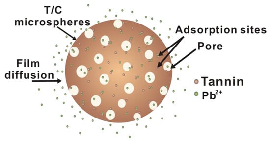 Cellulose, a biodegradable polysaccharide, is the most abundant biopolymer in plants []. It has safe characteristics such as no taste, insolubility, and stability in water and most organic solvents. Due to the multiple hydroxyl groups in its molecular chain, cellulose can be an ideal carrier for tannin immobilization via epichlorohydrin activation [,]. Tannin-immobilized cellulose microspheres or hydrogels were successfully fabricated via a facile homogeneous reaction for the removal of cationic dye from aqueous solution in our previous work []. In this work, tannin-immobilized cellulose microspheres were fabricated via a homogeneous reaction in a water/oil (W/O) emulsion. The adsorption isotherms, kinetics, and factors affecting Pb(II)adsorption were investigated to evaluate the adsorption ability of tannin/cellulose (T/C) microspheres.