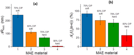 The modification of (a) the RMS surface roughness and (b) the relative modification of the reflected light intensity for different MAE materials.