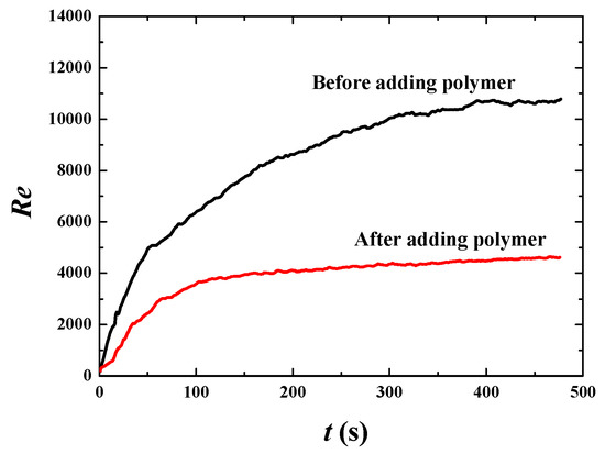 Reynolds numbers before and after adding polymer drag-reducing agents (DRAs) at utop = 1 m·s−1.