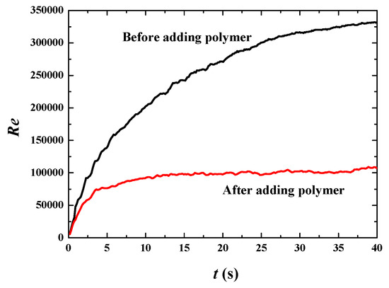 Reynolds numbers before and after adding polymer DRAs at utop = 50 m·s−1.