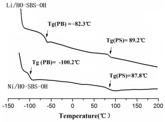Differential scanning calorimetry (DSC) data of Ni/HO–SBS–OH and Li/HO–SBS–OH.