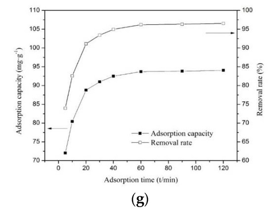 - Ge, M.; Du, M.; Zheng, L.; Zhou, X.; Jia, Z. Solid phase grafting preparation of SCB-g-MMA and its adsorption property. Acta Mater. Compos. Sin. 2016, 33, 2444–2453. [Google Scholar]
