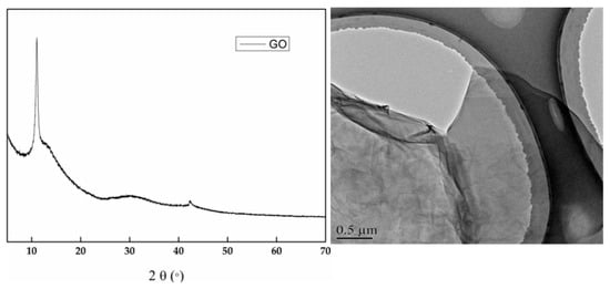 Graphene oxide (GO) is known as functional modified graphene, and is one of the great materials because of its good surface activity [20]. Its main structure is similar to graphene, except that it contains a large number of oxygen-containing groups, mainly including –OH, –C=O, –COOH and –C–O–C. These active groups cause GO to have good hydrophilicity, meaning it is easy to disperse in water. Although the insertion of oxygen-containing groups breaks the tight arrangement of carbon atoms in graphene to some extent—making GO less conductive than graphene—the stable structure of GO enables the strong mechanical properties of graphene to be preserved. A large number of active groups provide a large number of reaction sites for the modification of GO and form a strong interface interaction between GO and the polymer during the composite process, which is widely used to improve the polymer properties.