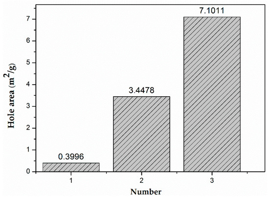 The hole area of the hydrogels (1) without GO, (2) with 20 mg of GO, and (3) with 30 mg of GO.