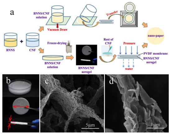The cellulose used in this work was bleached softwood pulp (llim Pulp Co. Ltd., Bratsk, Russia). The hexagonal Boron Nitride (h-BN) powders with an average diameter of 1~2 µm were obtained from Aladdin reagent Co. (Shanghai, China). Isopropyl alcohol was supplied from Nanjing Chemical reagent Co. (Nanjing, China). Polyvinylidene Fluoride membrane (PVDF membrane) with a pore size of 0.22 µm was obtained from Aladdin reagent Co. (Shanghai, China).