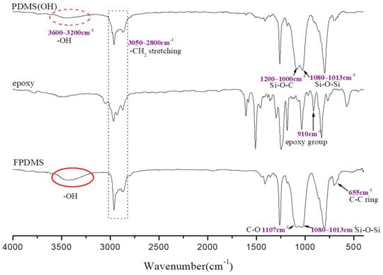 FTIR spectra of PDMS(OH), epoxy and FPDMS.