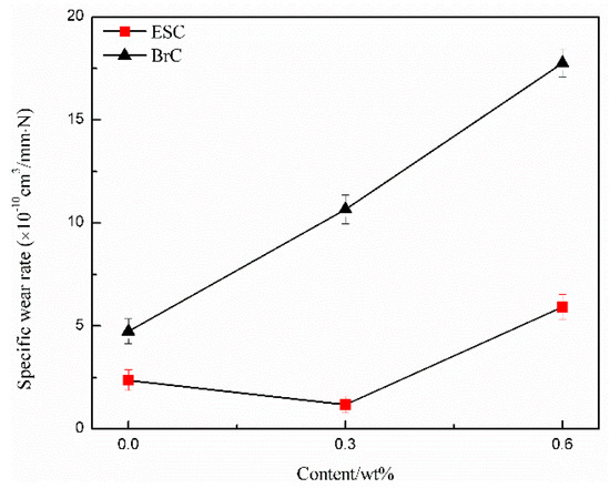 Wear rate curves of ESC and BrC with different MWCNT content.