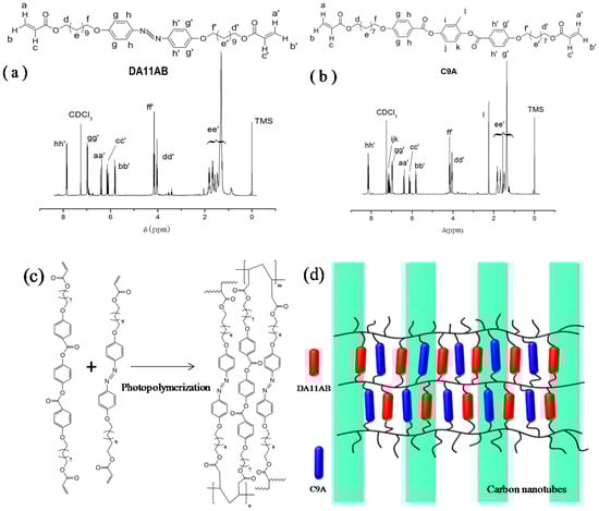 - Wang, W.; Sun, X.M.; Wu, W.; Peng, H.S.; Yu, Y.L. Photoinduced deformation of crosslinked liquid-crystalline polymer film oriented by a highly aligned carbon nanotube sheet. Angew. Chem. Int. Ed. 2012, 51, 4644–4647. [Google Scholar] [CrossRef] [PubMed]