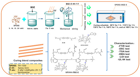Schematic diagram of the preparation of the SPOSS-PBZ-E nanocomposites.