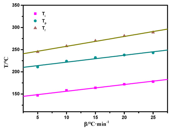 Curves of T versus β of the SPOSS-PBZ-E nanocomposites.