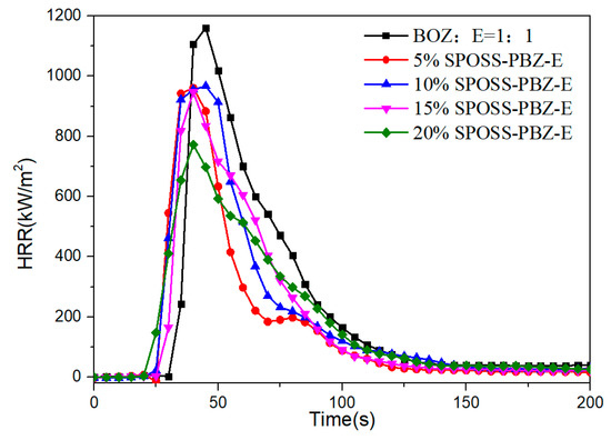 Heat release rate curves of the SPOSS-BOZ nanocomposites.