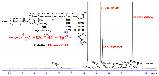 1H NMR spectrum of pluronic F127-grafted gelatin copolymer in D2O.