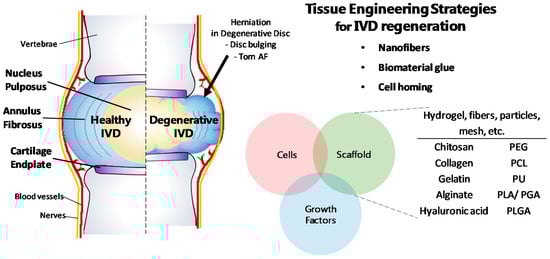 APA StyleChoi, Y., Park, M. H., & Lee, K. (2019). Tissue Engineering Strategies for Intervertebral Disc Treatment Using Functional Polymers. Polymers, 11(5), 872. https://doi.org/10.3390/polym11050872