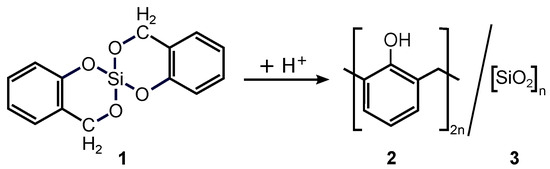 - Spange, S.; Kempe, P.; Seifert, A.; Auer, A.A.; Ecorchard, P.; Lang, H.; Falke, M.; Hietschold, M.; Pohlers, A.; Hoyer, W.; et al. Nanocomposites with Sturcture Domains of 0.5 to 3 nm by Polymerization of Silicon Spiro Compounds. Angew. Chem. Int. Ed. 2009, 48, 8254–8258. [Google Scholar] [CrossRef]