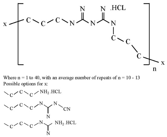 The molecular structure of PHMB. The different variations for end structures (x) and number of repeats (n) are indicated. [12].