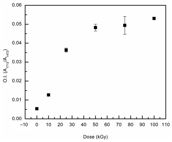 Oxidation index for all gamma irradiated UHMMPE fibers at different doses.
