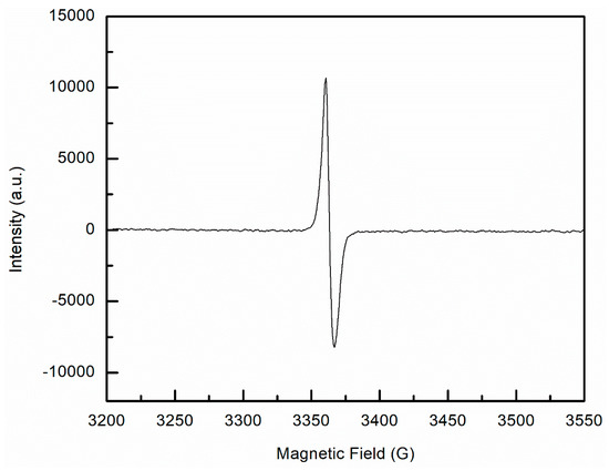 The work described herein has shown that this UHMMPE fiber exhibits similar behavior when exposed to radiation as do other types of gel-spun UHMMPE fibers—primarily a reduction in tensile strength, which may be due to chain scission. While this work did not achieve the desired result of improving the mechanical properties of the UHMMPE fiber, one notable result was determined. The irradiated fibers were tested as described previously and stored in dark ambient conditions for approximately six years, then reexamined using EPR for free radicals. Surprisingly, the gamma-irradiated samples showed clear evidence of long-lived polyenyl radicals, as shown by the strong singlet in Figure 10, which was irradiated under argon at 50 kGy and stored in an aerobic, dark ambient environment.