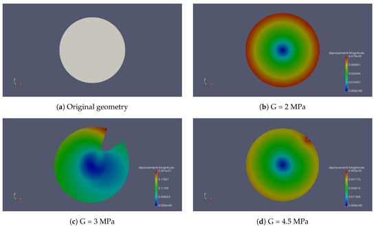 - Ding, J.; Remmers, J.; Leszczynski, S.; Huyghe, J. Swelling driven crack propagation in large deformation in ionized hydrogel. J. Appl. Mech. 2018, 85, 021007. [Google Scholar] [CrossRef]