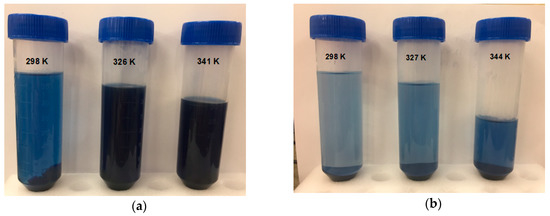 Figure 7 shows the results obtained in the thermodynamic study. As stated before, at temperatures of 53 and 68 °C, there was not an increase in the adsorption properties of chitosan-NaOH (Figure 8a). In the case of the β-CDs-EPI polymer, the best conditions to adsorb the dye was achieved at 25 °C, decreasing the capability of this polymer to entrap more dye molecules after increasing the temperature (Figure 8b).