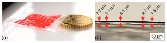 - Ecker, M.; Pretsch, T. Freely configurable Functionalization Tool for switchable Information Carriers. In Materials Challenges and Testing for Manufacturing, Mobility, Biomedical Applications and Climate; Udomkichdecha, W., Böllinghaus, T., Manonukul, A., Lexow, J., Eds.; Springer: New York, NY, USA, 2014; pp. 25–35. ISBN 978-3-319-11339-5. [Google Scholar]