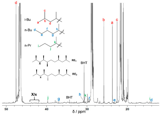 53]. As a result, they effectively estimated the percentage of 2,1-inserted propylene units internal to the main chain, and thus the ratio